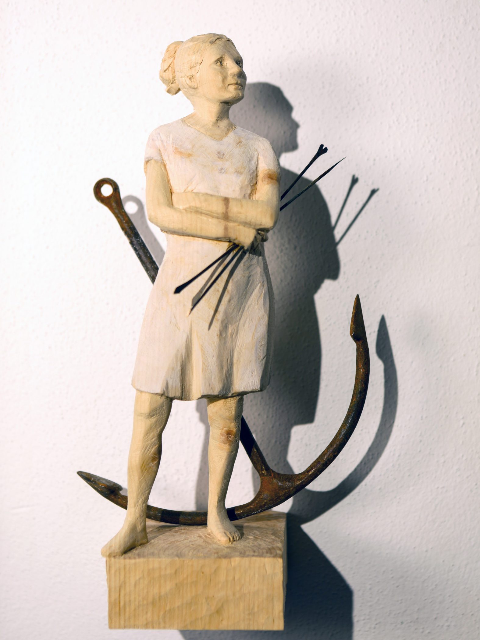 Gestaltung einer vollplastischen freistehenden menschlichen Figur mit Attribut.